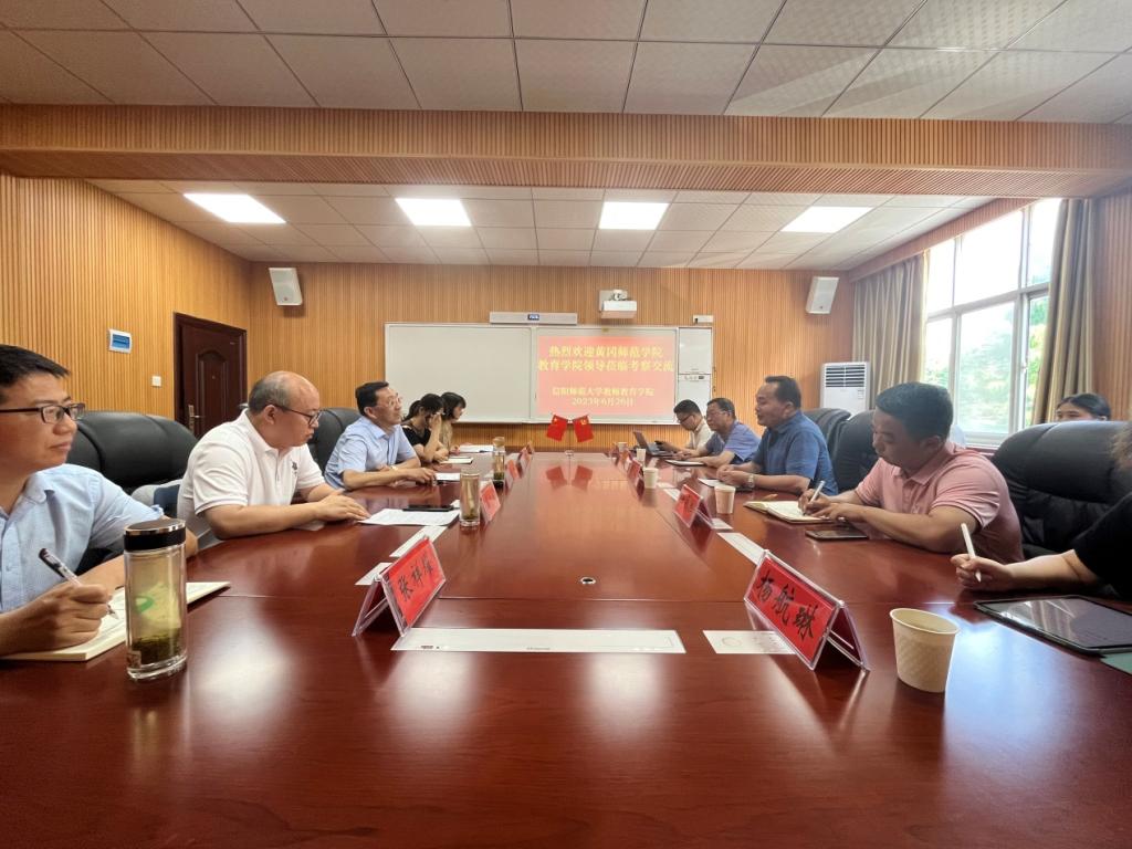 6月26日下午,黄冈师范学院教育学院院长陈中文、副书记王永胜等一行7人来我院就小学教育专业“红色园丁”人才培养项目与大学生社会实践活动开展等进行考察交流。教师教育学院党委书记潘登、副书记王艳蕊、副院长李文田等在教七楼301会议室接待来访客人,实践教学中心、师范技能训练教研室相关教师代表参加座谈会。
