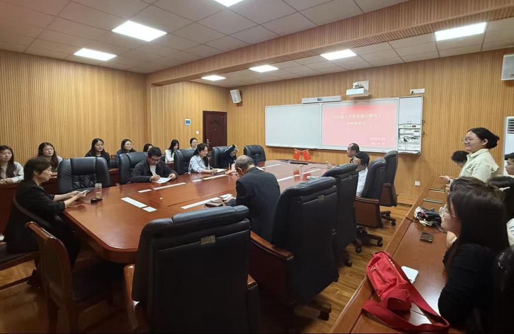 为加强师生互动衔接、规范研究生日常工作与学术管理,助力新生快速适应研究生生活,9月30日下午,教师教育学院在教七楼301室举行2025级小学教育专业硕士研究生师生见面会。本次见面会由学院院长李文田主持,小学教育专业全体导师及2025级小学教育硕士研究生全员参加。