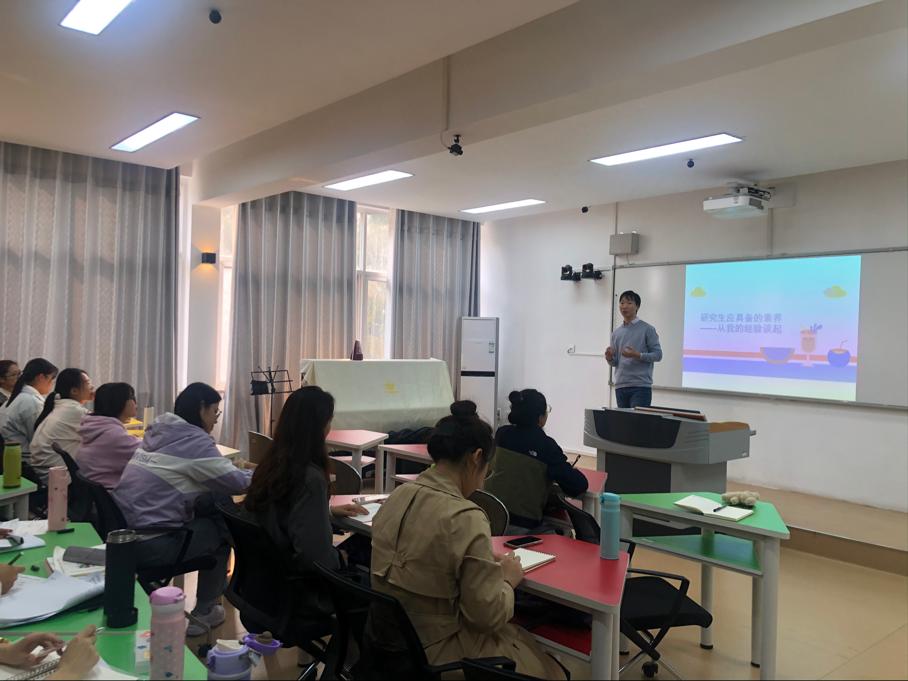 10月28日下午,应教师教育学院邀请,教育科学学院岳鹏飞博士为2021级小学教育硕士研究生做“研究生应具备的学术素养”主题报告。报告会由教师教育学院院长付永昌主持。
