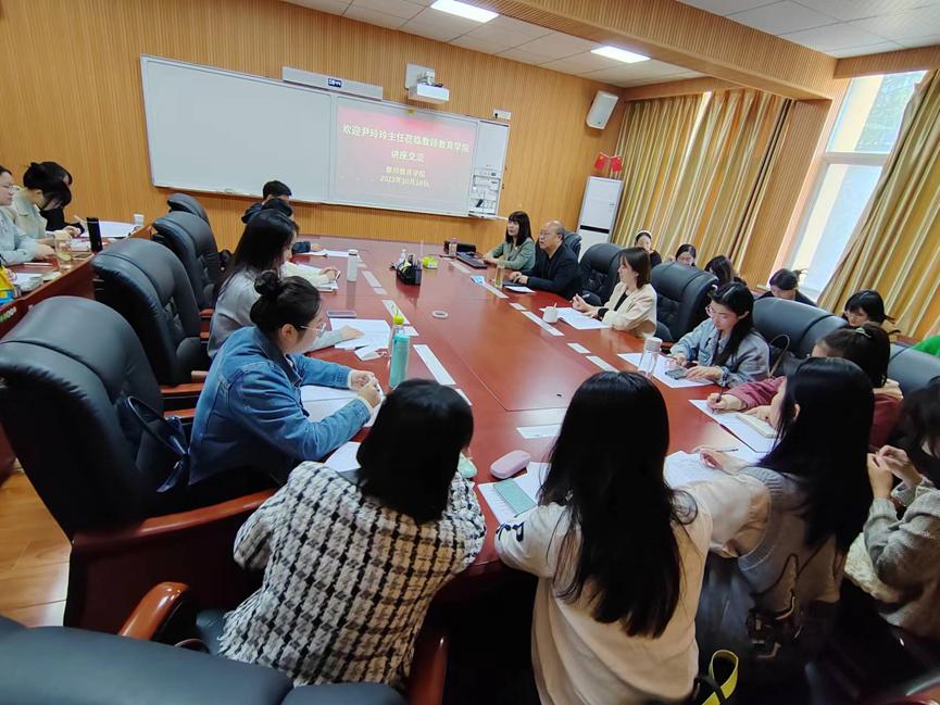 10月18日上午,应教师教育学院邀请,信阳市南湾风景区教育管理办尹玲玲主任在教七楼301室为2022级小学教育本科生、研究生及部分教师作“教育教学研究与小教学生科研能力培养”报告。报告会由教师教育学院副院长李文田主持。