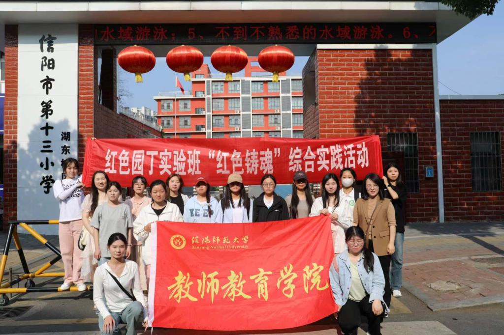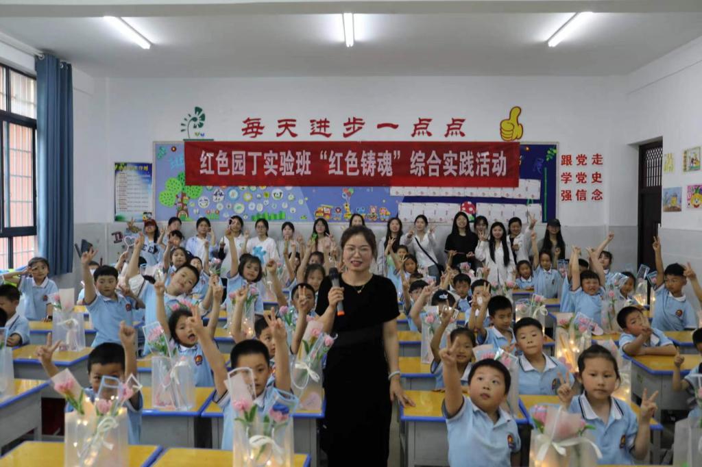 5月8日,教师教育学院2022级红色园丁实验班在班主任谭阿明老师的带领下,前往信阳市第十三小学湖东校区一(11)班开展“红色铸魂”综合实践活动。
