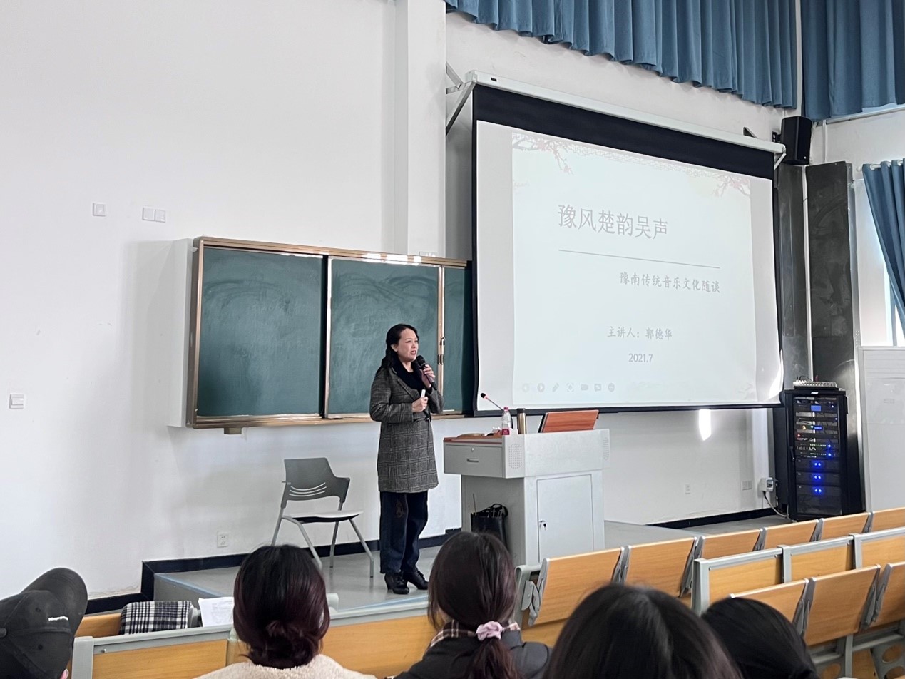 11月30日下午,应教师教育学院邀请,信阳师范学院音乐与舞蹈学院郭德华教授在淮河校区理综楼208室为2021级小学教育专业全体学生作了“豫风楚韵吴声——豫南民间音乐文化随谈” 主题报告。报告会由教师教育学院姜璠主持。