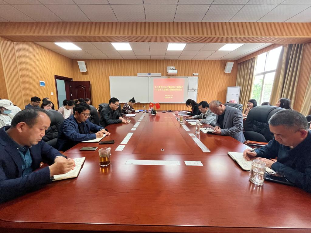 5月9日下午,教师教育学院在教7楼301会议室召开学习贯彻习近平新时代中国特色社会主义思想主题教育工作推进会,对学院主题教育工作进行再安排、再部署,推动主题教育落细落实。学院全体教职工参加会议,会议由党委书记潘登主持。