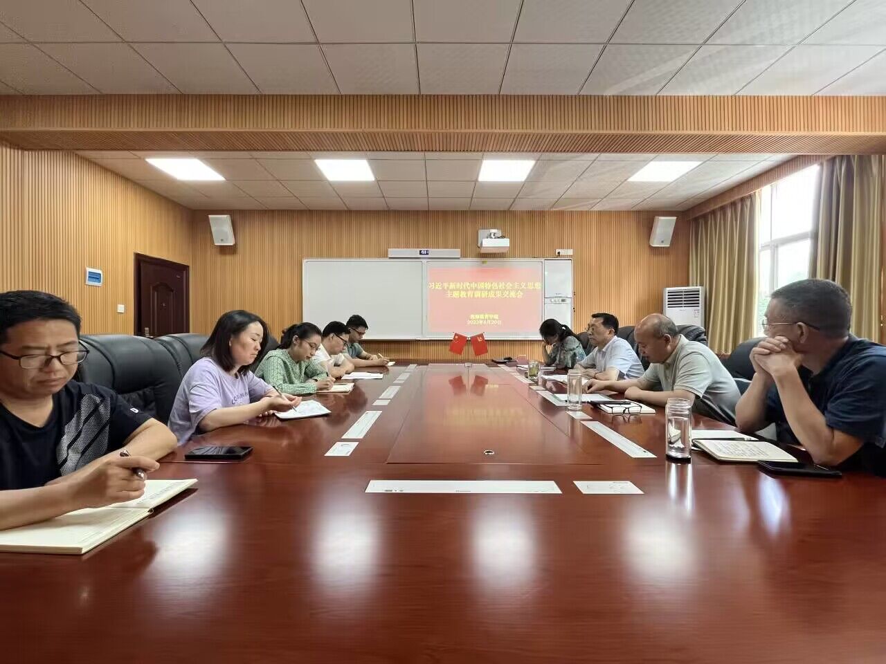 6月20日下午,教师教育学院在教7楼301会议室召开学习贯彻习近平新时代中国特色社会主义思想主题教育调研成果交流会。学院党委书记潘登、副书记王艳蕊、副院长李文田、张申亚、科级干部与党支部书记参加此次交流会。会议由潘登主持。