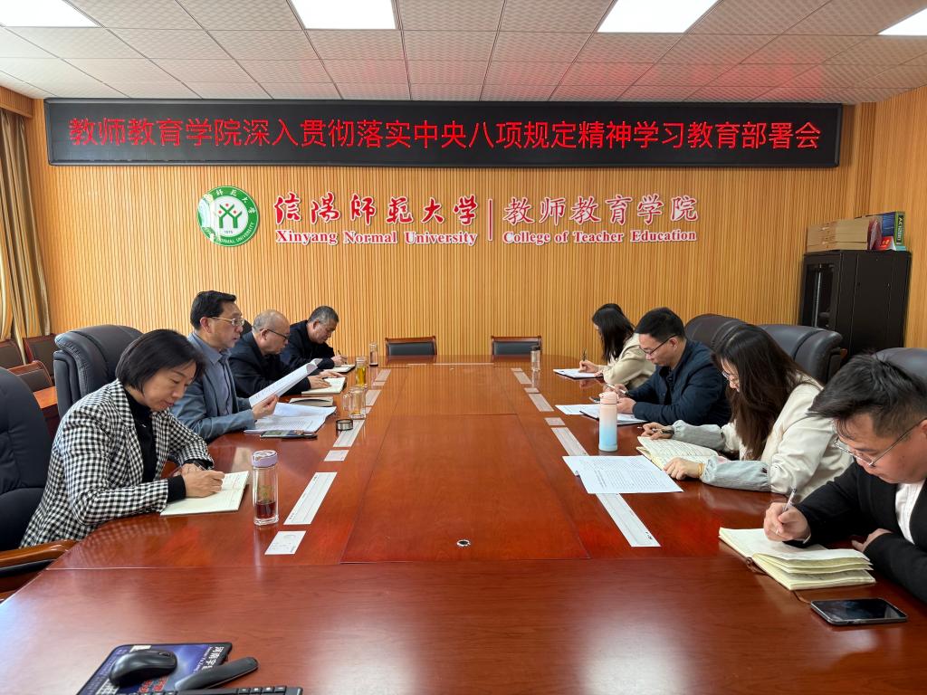 3月20日下午,教师教育学院在教7楼301召开深入贯彻中央八项规定精神学习教育部署会。学院领导班子成员、科级干部、支部书记参加会议,会议由学院党委书记潘登主持。