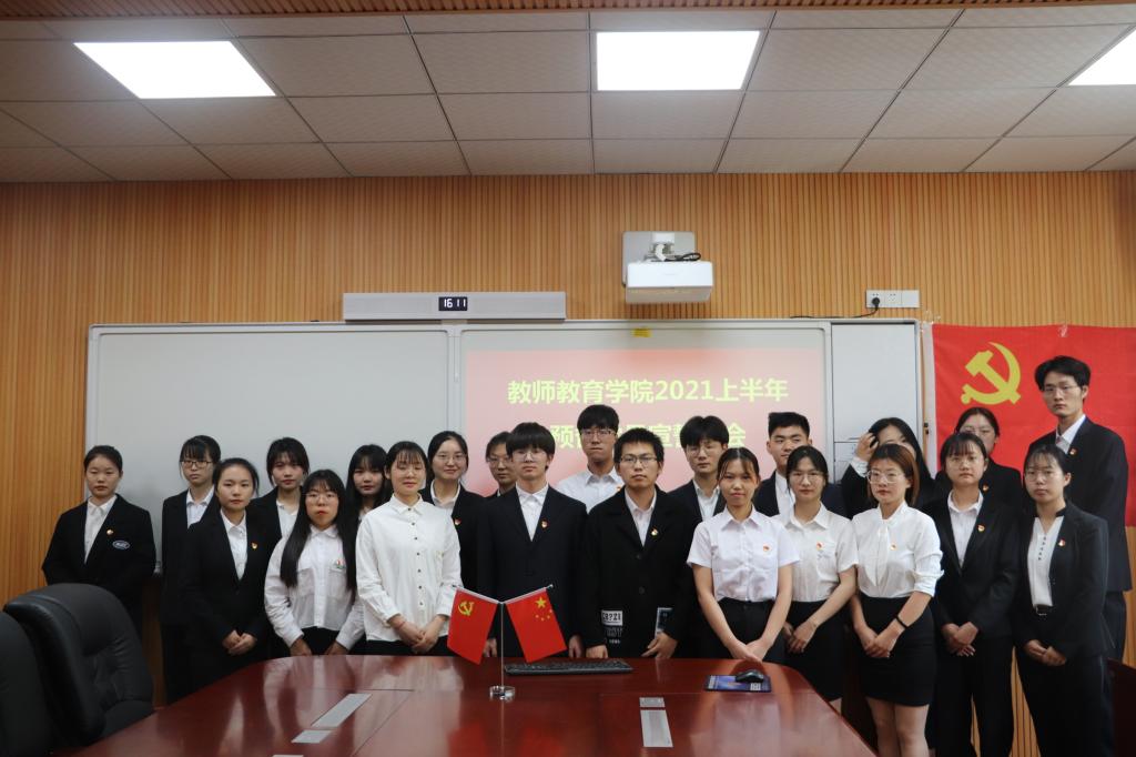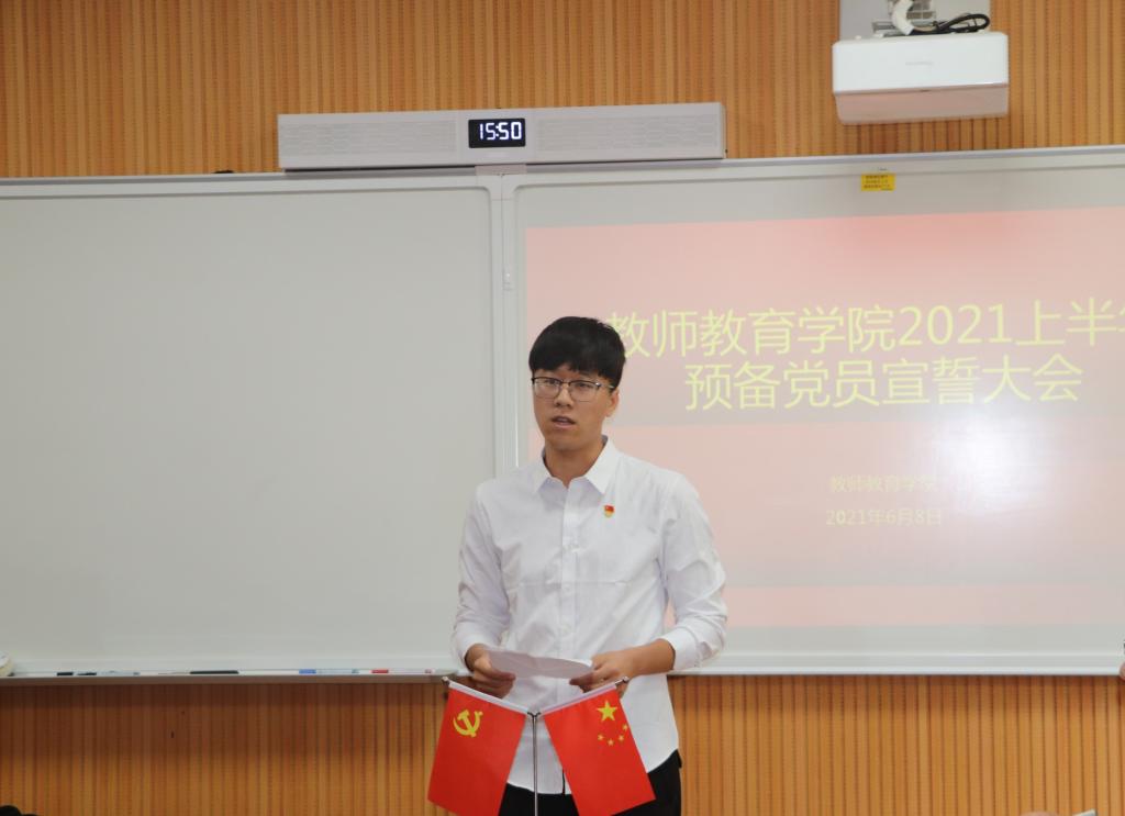 6月8日下午,教师教育学院学生党支部在教七楼301会议室举行了2021年上半年预备党员宣誓大会。学生党支部书记李依,学生党员代表张春胜、仇庭慧,22名预备党员以及入党积极分子代表到场参会。会议由李依主持。