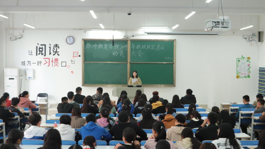 为进一步加强学风建设,增进广大新生对校规校纪的认识与了解,11月7日中午,教师教育学院校规校纪考试动员会在社科楼121教室顺利召开。辅导员刘莅原、学生会主席团成员及2019级全体新生共同参加此次动员会。会议由学术部副部长陈正鹏主持。