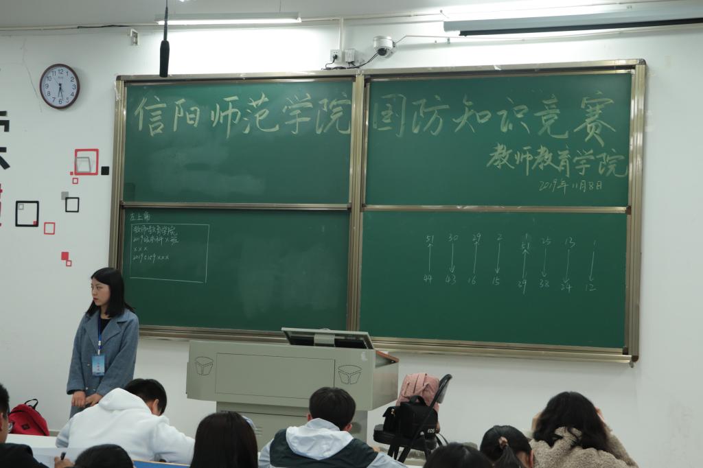为积极响应学校国防教育活动,引导学生主动学习国防知识,11月8日晚教师教育学院在社科楼121和人文楼707教室组织学生开展“国防知识竞赛”活动,2019级全体新生参加竞赛。