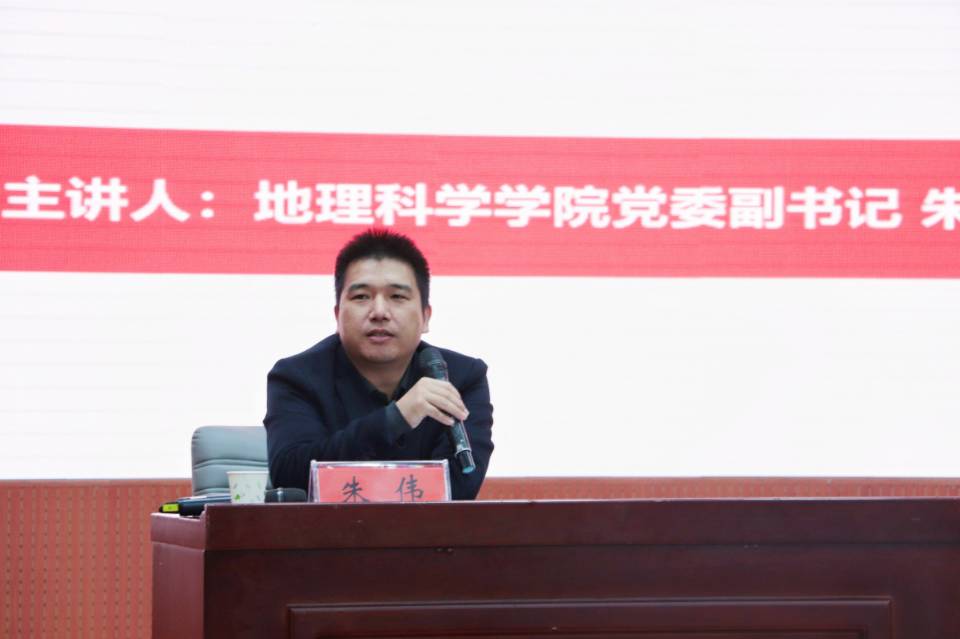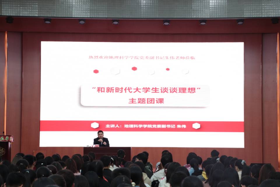 为切实提高广大新生团员的理论素养和实践水平,进一步加强青年团员理想信念教育,11月18日晚,在校团委的组织安排下,地理科学学院党委副书记朱伟于逸夫楼报告厅为教师教育学院和体育学院2020级全体新生上了以“和新时代大学生谈谈理想”为主题的团课。