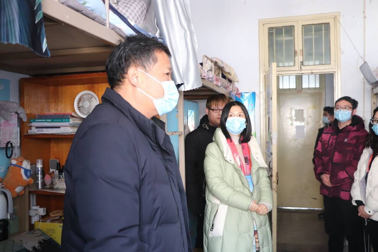 为深入了解学生返校情况,关注学生新学期生活及思想动态,排查宿舍安全隐患,督促疫情防控常态化工作有序开展。2月20日下午,教师教育学院党委书记潘登,院长付永昌,党委副书记王艳蕊、副院长李文田、张申亚率全体专、兼职辅导员前往学生宿舍走访并看望返校学生。