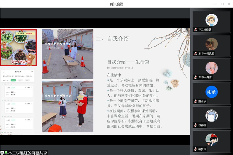 会议伊始,杨一凡介绍了本次竞选会的竞选要求。接着,竞选者依次通过ppt演讲展示个人风采。竞选过程中,选手们根据自身基本情况,对岗位的认识展开演讲,他们语言自然流畅,演讲内容丰富。21级本科1班团支书段锦程以自身经历为切入点,从自我介绍、职位理解、竞选优势、工作规划四个方面展开演讲,充分展示了自身工作能力和热情,面对姚雨承老师的提问,他作出帮助新生了解社团活动、协调处理同学关系,更好融入大学生活的回答。21级本科1班黄洋发挥自身开朗、热情的性格优势,在本次班代竞选中侃侃而谈,提出发挥班代在新生班级中的带头作用,提高新生班级的凝聚力。最后,经师生投票决定,段锦程、李继红当选教师教育学院2022级新生班代。