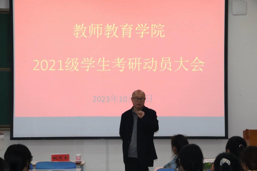 为进一步提高同学们的考研积极性,增强学生的考研斗志,帮助同学们解答关于考研的疑惑,10月27日,教师教育学院于社科楼414教室召开2021级考研动员会。教师教育学院党委副书记王艳蕊、副院长李文田、辅导员姚雨承和2021级全体学生参加了此次会议。此次动员会由姚雨承担任主持人。