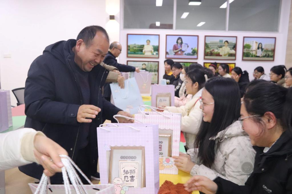 活动伊始,李文田向大家阐述考研对个人发展以及未来职业规划的重大意义,并向大家介绍了今年我院研究生报考情况与考研方向,就目前的考研形势,为大家分析了有关考研的相关政策,并为大家加油鼓劲。随后,我院优秀研究生代表董伟、刘远结合自身经历,向同学们讲解了研究生考试的注意事项。王淑贤对同学们考研路上的付出与努力给予充分肯定,并亲切地与在场考研学子进行谈心交流,关心询问同学们的学习生活情况。活动上,领导老师们向同学们分发学院为大家精心准备的考研大礼包。考研大礼包内有“苹稳上岸”、“心想事橙”、“枣日成硕”等寓意丰富的水果,有记录值得回忆考研瞬间的相框,有送来冬日温暖的暖宝宝,更有领导老师们亲手写下的祝福明信片……这些充满温暖的祝福包含着老师们对我院学子们考研顺利的殷殷期盼。会议尾声,潘登鼓励学子们学会自我调节,及时调整心态,坚定考研信心,希望同学们在考研的路上怀揣对科学探索的求知精神,不断探索,脚踏实地,始终持有恒心、耐心和专心。