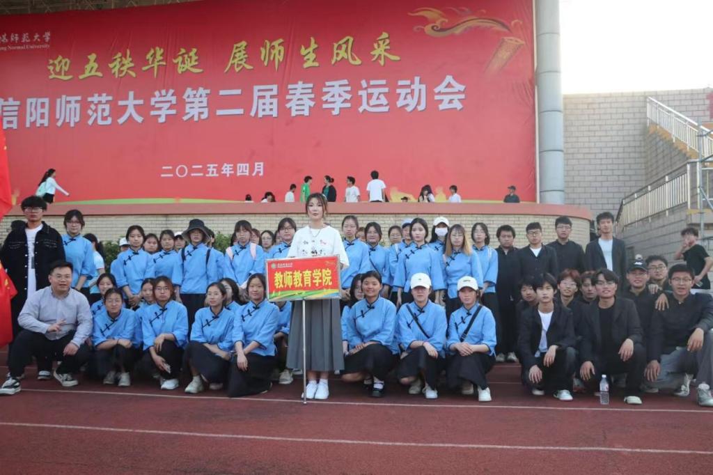 为弘扬体育精神,增强师生体质,信阳师范大学第二届春季运动会于4月17日在谭山校区西操场举行。教师教育学院百余名师生积极参与各项比赛,在赛场上奋勇拼搏,充分展现了学院的自信风采。