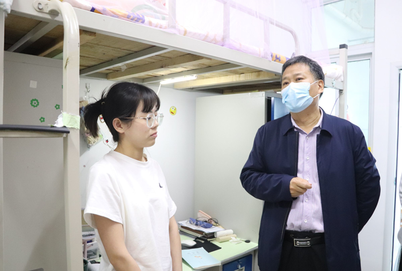 走访研究生宿舍过程中,付永昌院长详细询了同学们的学习、生活和科研情况,并就作息时间安排、线下教学情况、专业课程学习、科研方向选择等方面情况与同学们逐一交流,嘱咐同学们积极面对封校生活,珍惜同窗相处时间,营造良好的学习环境和生活文化氛围。同学们对院领导的关怀表示真挚的感谢,纷纷表示会遵守学校及学院的疫情防控规章制度,扎实学习、踏实生活,不辜负学院的培养和老师的期望。