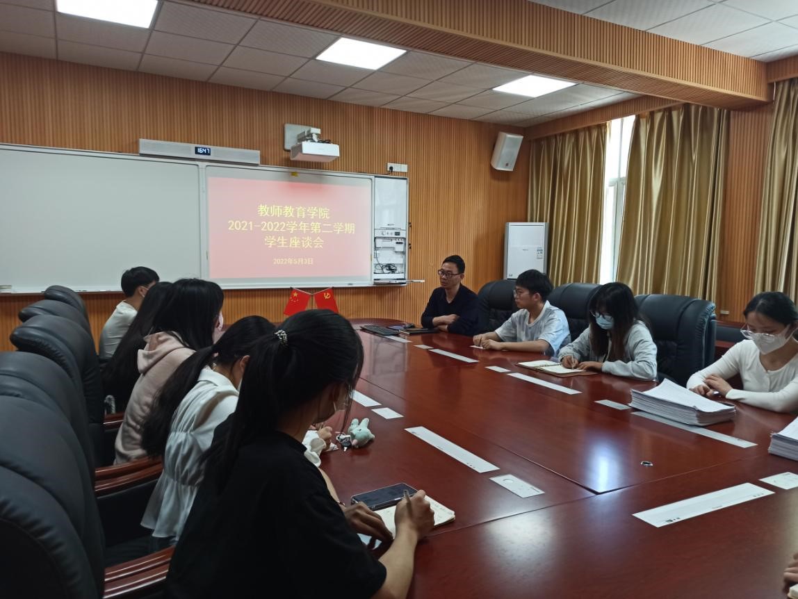 为贯彻落实学校《课堂教学质量提升年专项行动实施方案》(信院字[2022]36号)精神,深入了解学院教学工作运行情况,稳定教学秩序,强化教风和学风建设,提高学院课堂教学质量,提升教师教育教学能力,学院于5月3日下午在301会议室举行了2021-2022学年第二学期教学工作学生座谈会,学院小学教育专业所有班级学委同学参加座谈会。座谈会由学院教学秘书赵国龙老师主持。